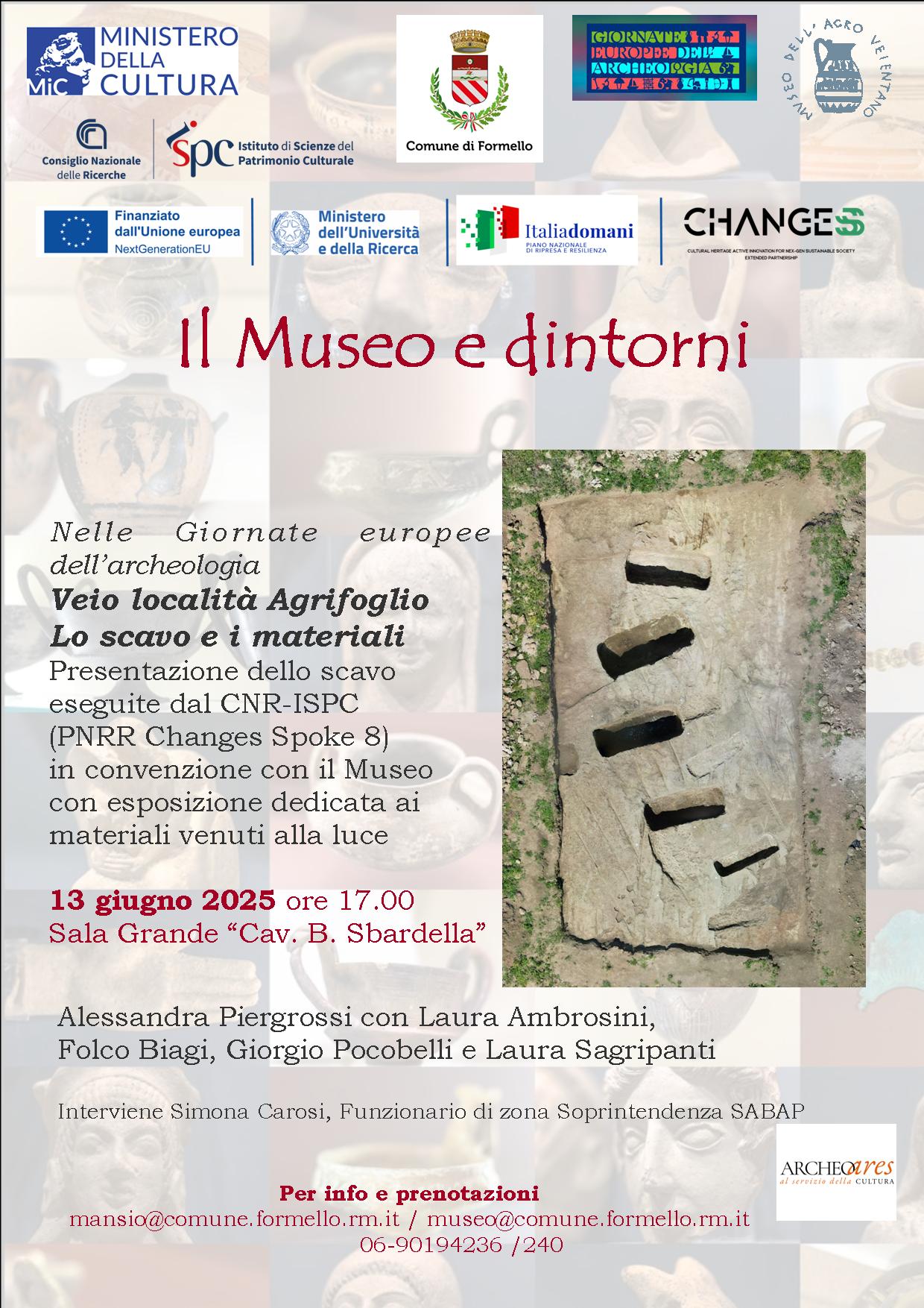 In questo ambito, il Museo dell’Agro Veientano ospita un incontro dedicato alle ricerche condotte dal CNR ISPC su un’importante scoperta: una nuova necropoli di epoca orientalizzante rinvenuta nella zona di Veio, località Agrifoglio. Durante l’appuntamento verranno presentati i primi risultati delle indagini sul campo e il contesto storico-archeologico del rinvenimento, che arricchisce la conoscenza delle pratiche funerarie veienti e del territorio antico.