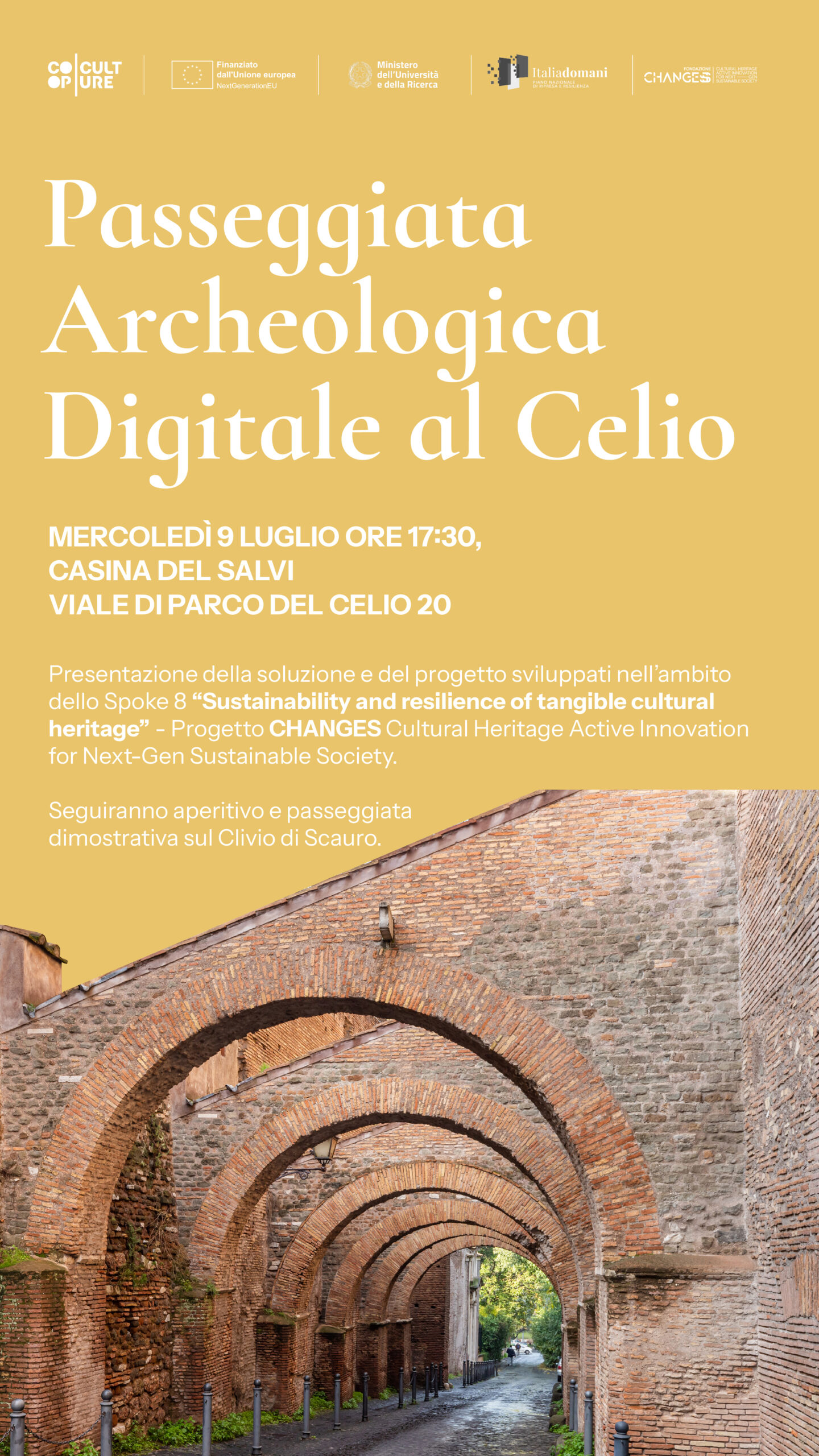 L’iniziativa è sviluppata nell’ambito dello Spoke 8 Sustainability and resilience of tangible cultural heritage del progetto CHANGES (PE00000020), finanziato dall’Unione Europea – NextGenerationEU, volto a promuovere l’innovazione nei settori della cultura umanistica e del patrimonio attraverso ricerca, formazione e trasferimento tecnologico.