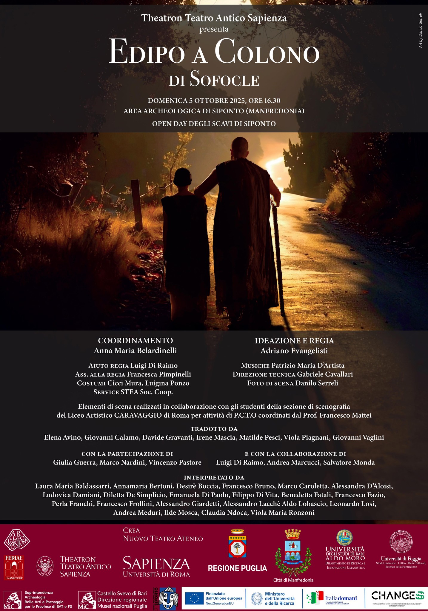 La compagnia teatrale Theatron – Teatro Antico alla Sapienza, metterà in scena la tragedia di Sofocle “Edipo a Colono” con la regia di Adriano Evangelisti (in allegato note di scena).