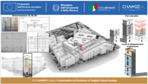 L’obiettivo dell’attività di ricerca è perseguito tramite l’implementazione di un modello digitale in ambiente HBIM, in particolare di alcuni pilot cases selezionati ed analizzati. A seguito di una raccolta di documentazione storica sistematizzata e dell’acquisizione massiva del dato – capace di restituire un modello numerico 3D – sarà possibile elaborare i dati acquisiti mediante il processo “scan to bim”, operando una scomposizione semantica e una informatizzazione del modello stesso.